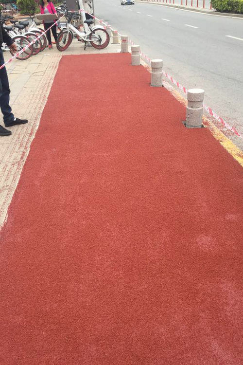 3.交通警示作用:不同顏色形成的彩色路面,顏色鮮艷明亮,可以根據(jù)需要采用防滑路面來標記各種專用車道和標識;