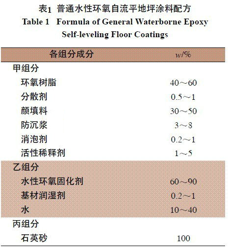 普通水性環氧自流平地坪漆配方如表1所示。